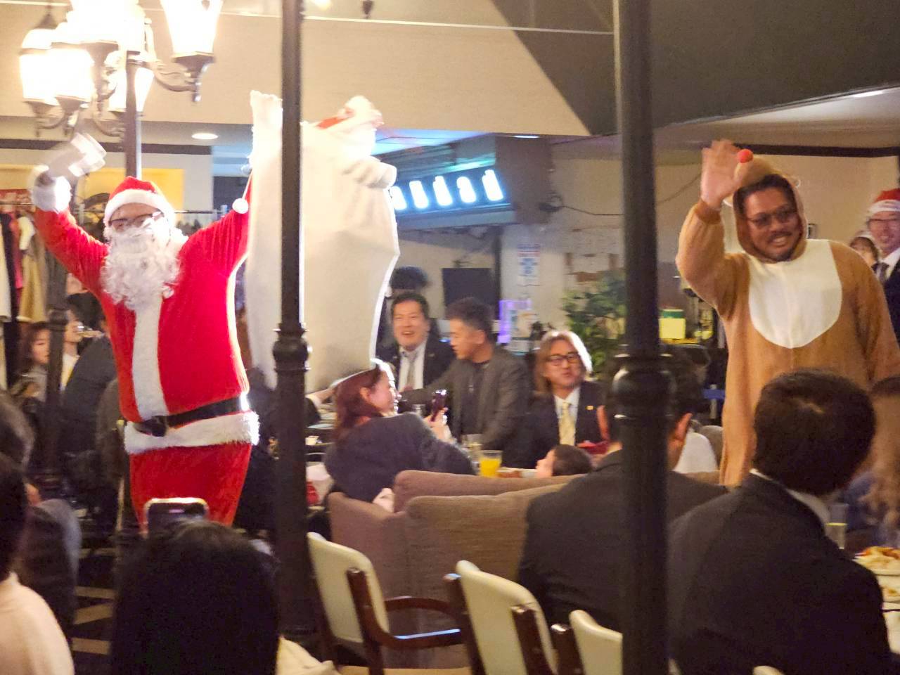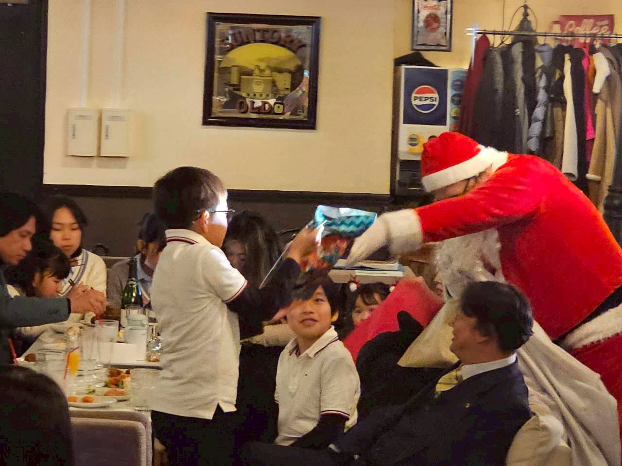 サンタクロースやトナカイに扮したメンバーが登場して、お子さんたちにプレゼントをお渡しします🎁